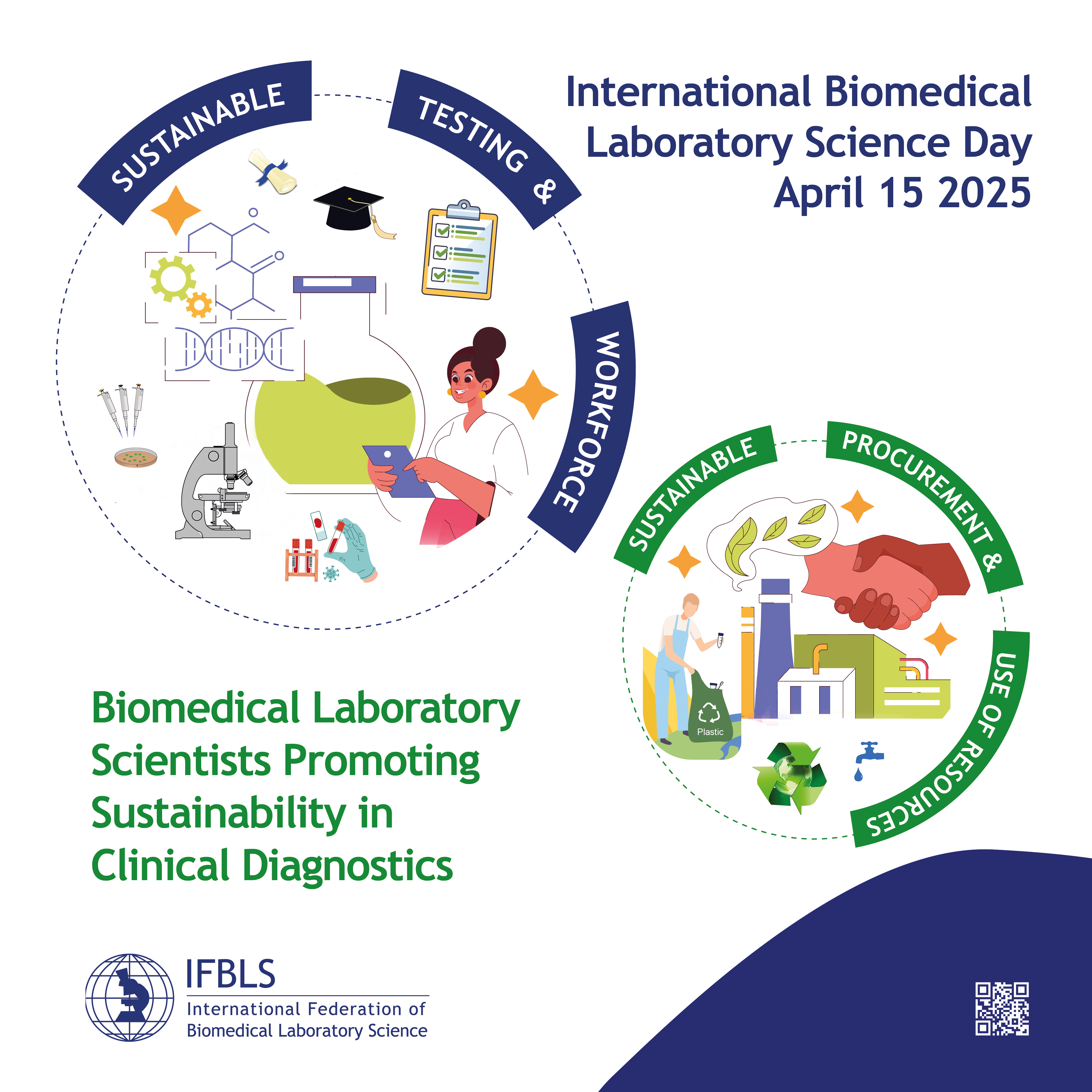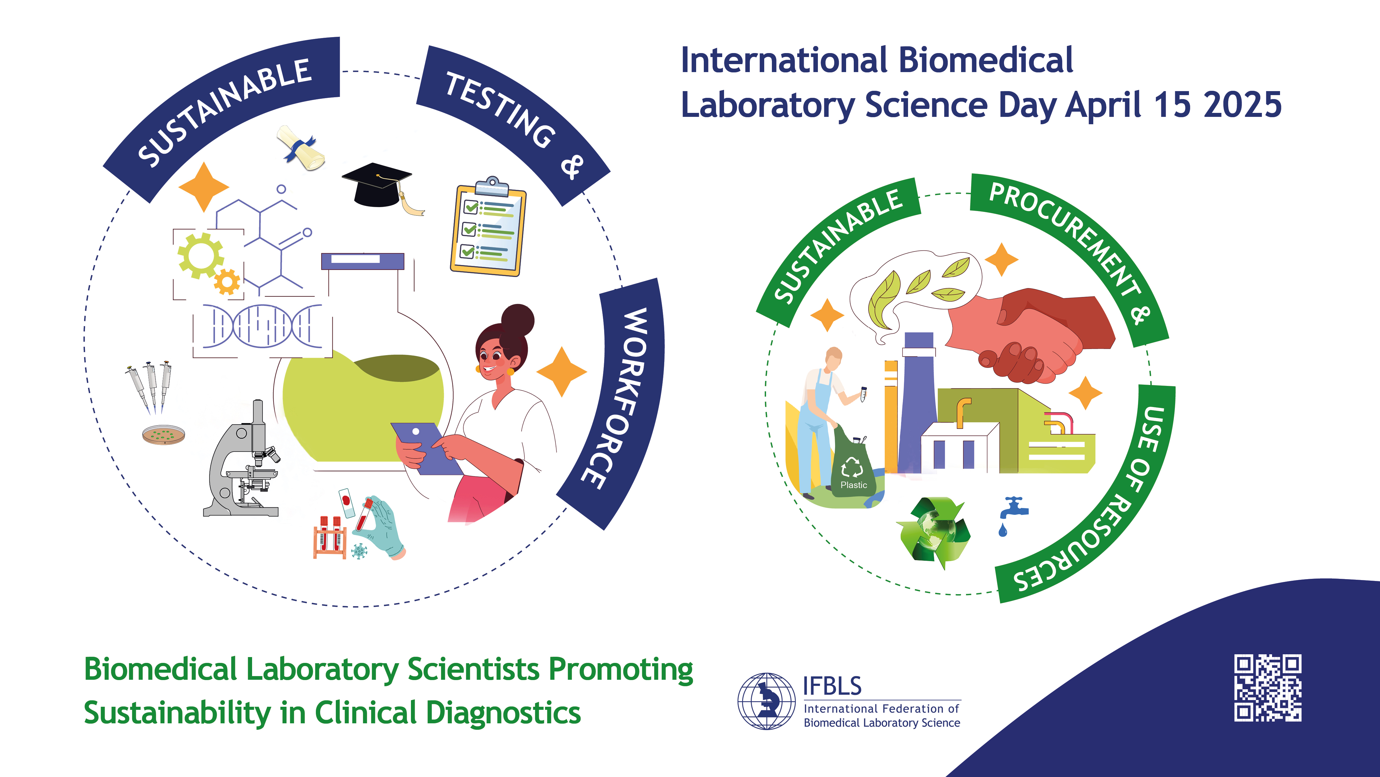 This two-year theme, as selected by the IFBLS Board of Directors, highlights the vital role of Biomedical Laboratory Scientists in advancing clinical health care while prioritising environmental responsibility.