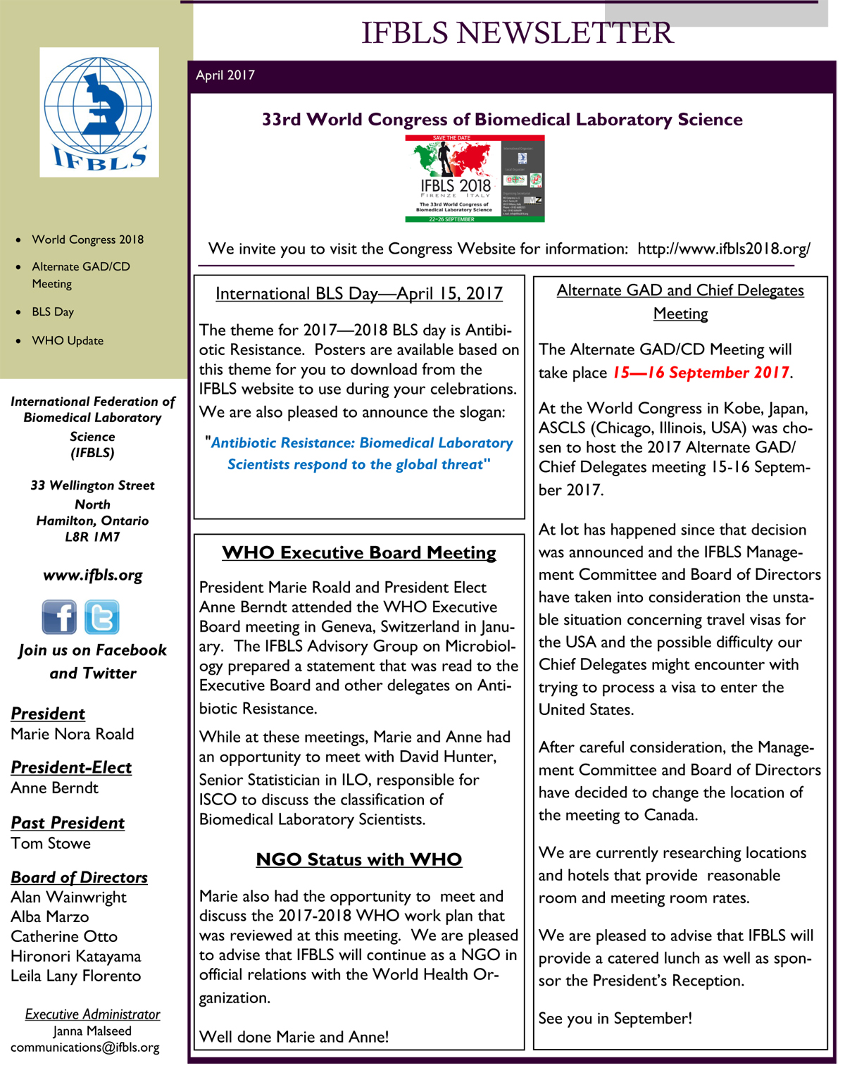 IFBLS Office Contact Information