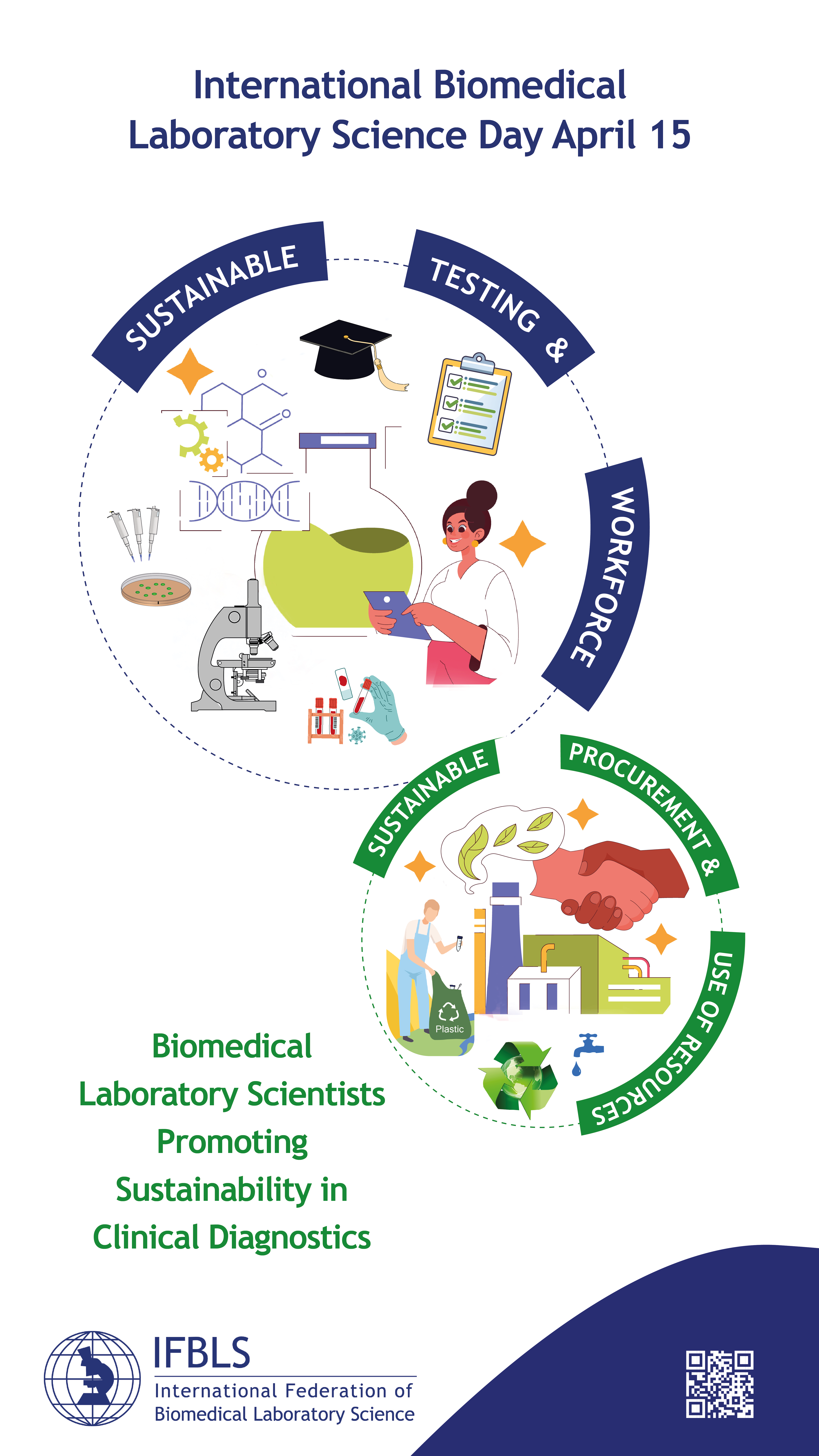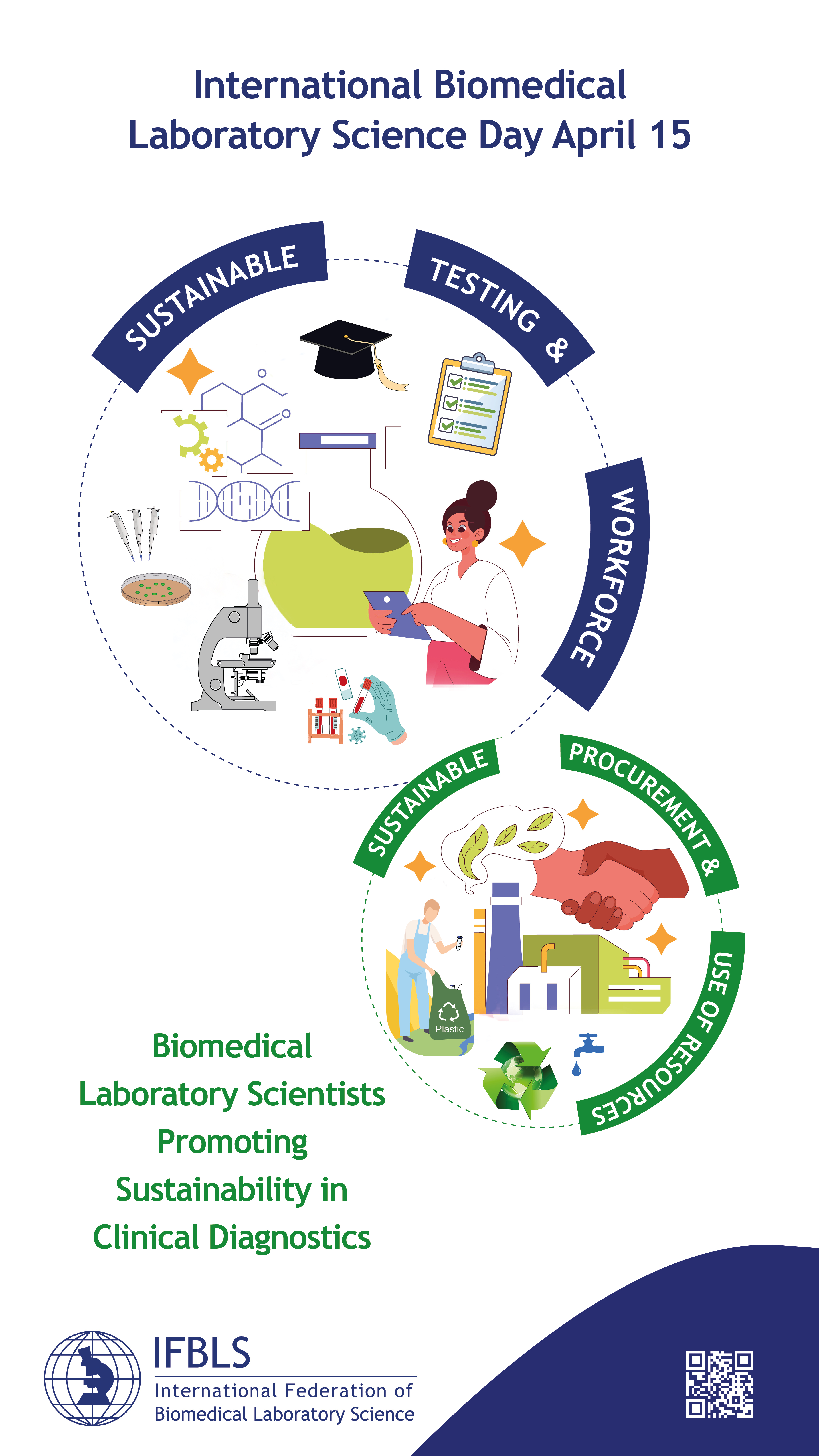 This two-year theme, as selected by the IFBLS Board of Directors, highlights the vital role of Biomedical Laboratory Scientists in advancing clinical health care while prioritising environmental responsibility.